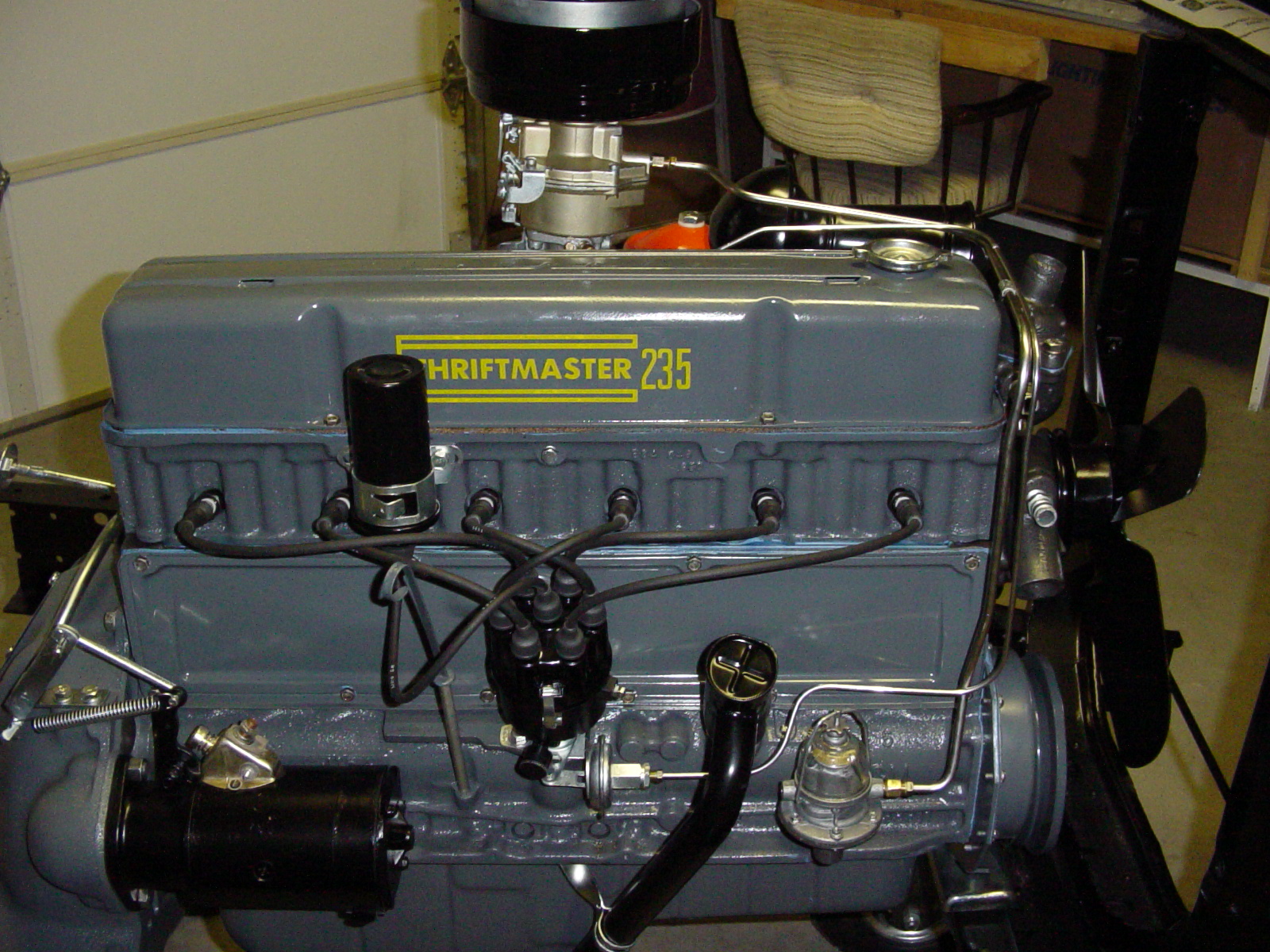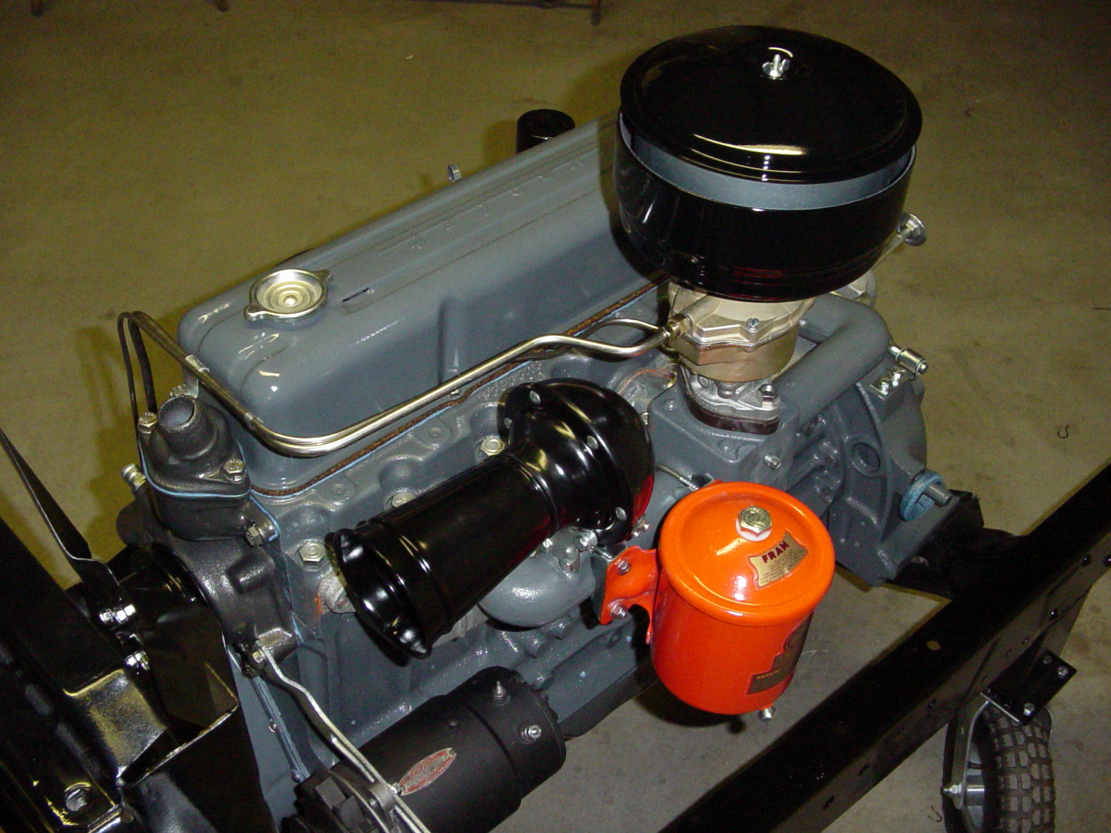 This 1954 235 was taken out of a badly burned truck. The block was thoroughly machined and tested so although I was skeptical about fire damage, there wasn't any. The head was bad, so I got another one and proceeded to rebuild the engine. I do not skimp when it comes to proper machining of heads and blocks. This one was bored to .030 over and the head got hardened valve seats to compensate for todays gas not having lead (a good lubricant for valves). I have a great machine shop locally and they deck, line bore, bore and test everything before handing me the parts and gaskets, etc. Then I take it back to the shop and assemble and test. I do not have assembly pictures. I have this personal battle with cameras. They are never handy when they are really needed the most!