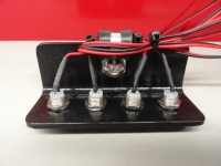 Here are a few more pics of the bracket. To wire the lights in, you want to be EXTRA careful in routing these LED lights because they are very fragile and the leads break off rather easily. Route the two left wires through the Adel Clamp one direction, and the right two wires the opposite, then tie wrap them firmly in place leaving plenty of slack so pulling on the wires does not damage the LED's. Once the LED's are in place, use Red Terminal Male Connectors on the ends for easy connection to the black box. Of course with the invention of shrink wrap, we can make it look really clean.